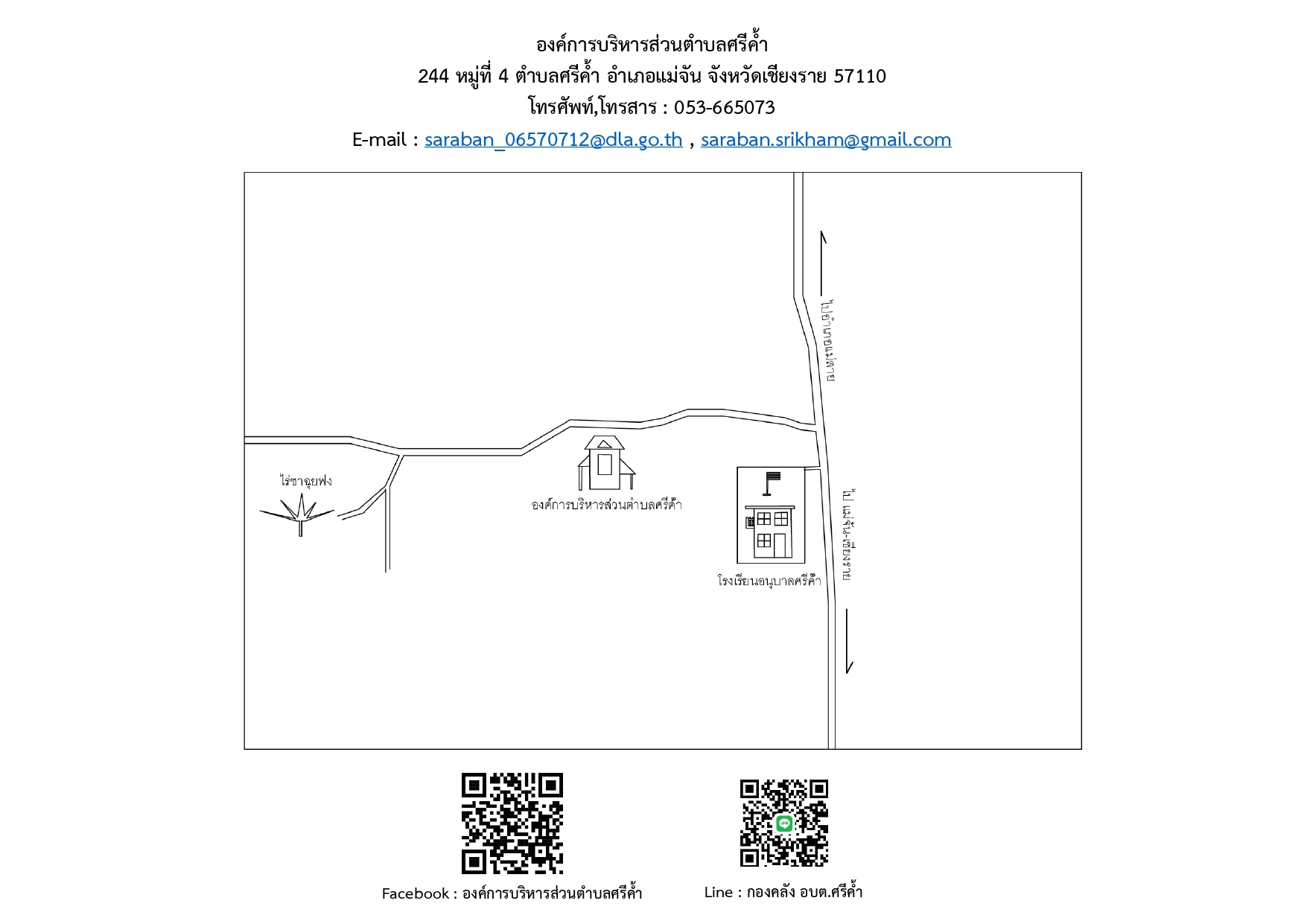 244 ตำบลศรีค้ำ อำเภอแม่จัน จังหวัดเชียงราย 57110 โทรศัพท์ 053 665073 โทรสาร 053 665073