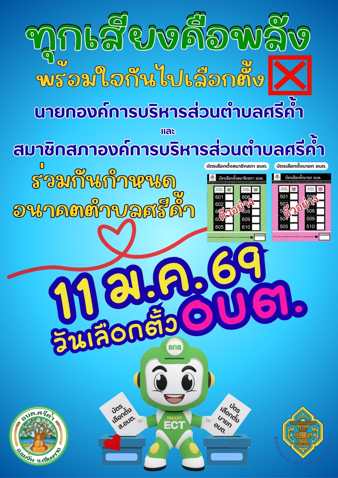 ++ประชาสัมพันธ์++ การรับสมัครเลือกตั้ง นายกฯ และ สมาชิกสภา อบต.ศรีค้ำ